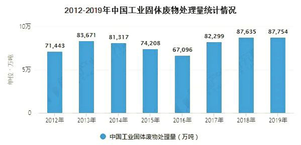 1、2019年中國工業固體廢物產量小幅增加