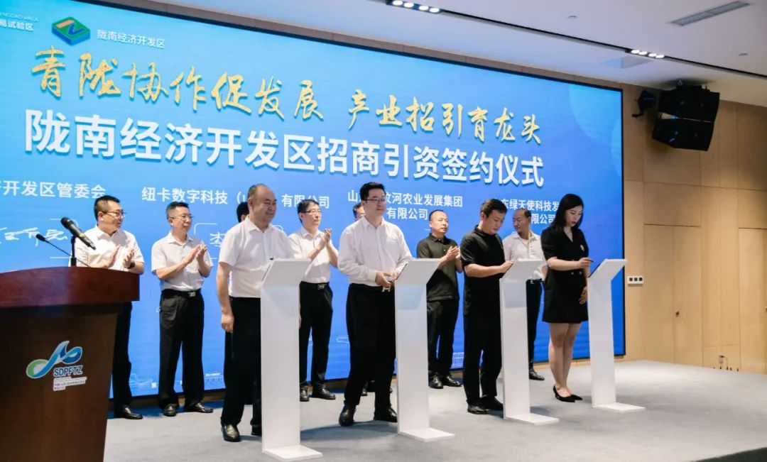 近日,以“青隴協(xié)作促發(fā)展·產(chǎn)業(yè)引進(jìn)育龍頭”為主題的隴南經(jīng)濟開發(fā)區(qū)產(chǎn)業(yè)招商暨項目簽約大會在青島市自貿(mào)區(qū)舉行。隴南經(jīng)濟開發(fā)區(qū)黨工委書記、管委會主任馬文鋒、隴南市政協(xié)副主席、青島市政府副秘書長武福成、綠天使集團運營總監(jiān)姜琳琳等出席簽約儀式。