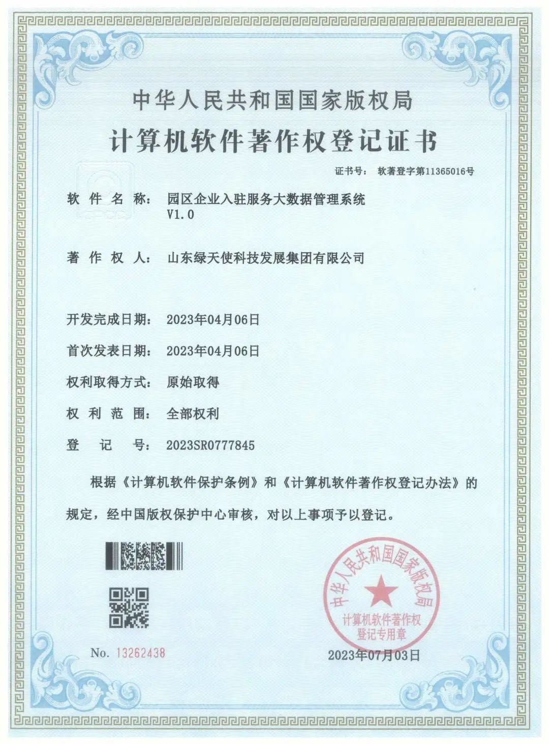 為進一步賦能綠天使產(chǎn)業(yè)園區(qū)綜合數(shù)字化運營管理,提高園區(qū)的產(chǎn)業(yè)服務能力及園區(qū)品牌價值,為企業(yè)提供一站式云服務解決方案,推動工業(yè)園區(qū)互聯(lián)網(wǎng)關(guān)鍵技術(shù)創(chuàng)新,近日,綠天使自主設計與研發(fā)的“工業(yè)園區(qū)互聯(lián)網(wǎng)云服務管理平臺V1.0”和“園區(qū)企業(yè)入駐服務大數(shù)據(jù)管理系統(tǒng)V1.0”,根據(jù)《計算機軟件保護條例》和《計算機軟件著作權(quán)登記辦法》的規(guī)定,經(jīng)中國版權(quán)保護中心審核,獲得中華人民共和國國家版權(quán)局《計算機軟件著作權(quán)登記證書》并成功上線。