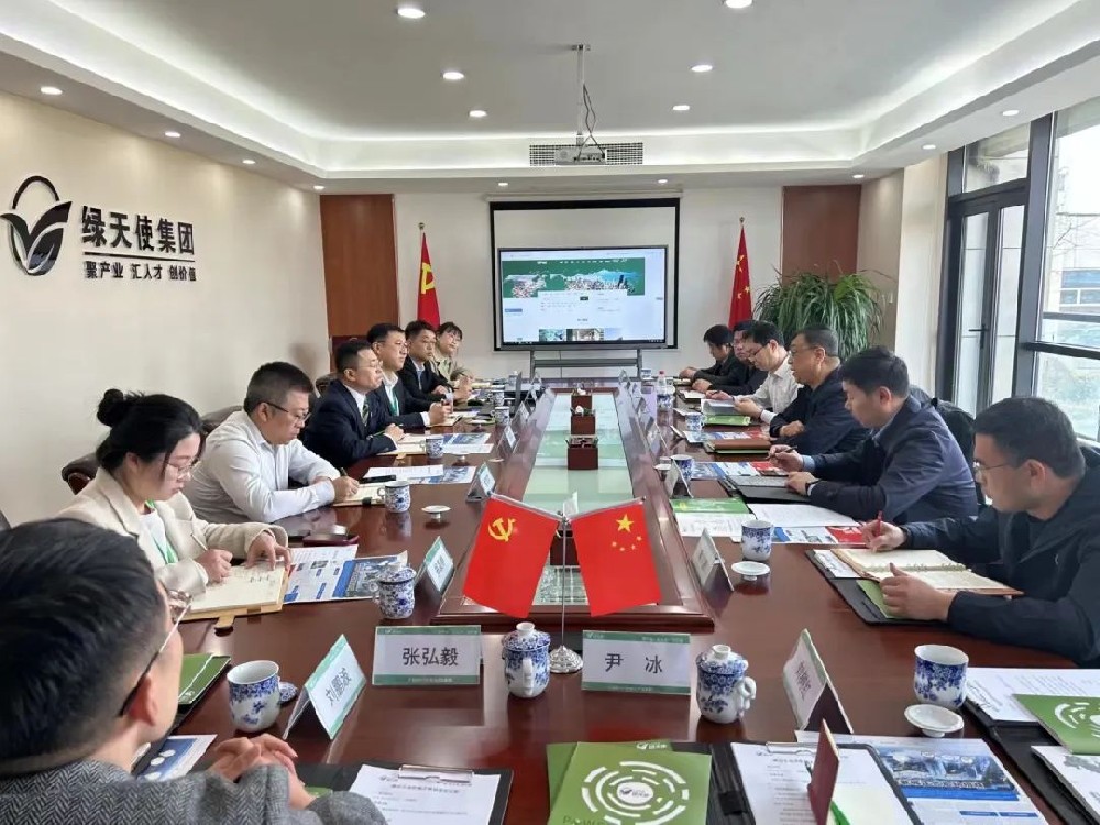 近日,濰坊市金控集團黨委書記、董事長于新華,黨委委員、副總經理劉漢杰,產融新城總經理陳建昌,副總經理梁波、張繼強,國信租賃公司總經理劉樹紅,辦公室副主任李治青,國信股權投資公司執行董事、總經理尹冰,產融新城融資部負責人張弘毅,銷售部負責人劉鵬波等一行來訪綠天使集團參觀交流,綠天使集團董事長王瑞強,總