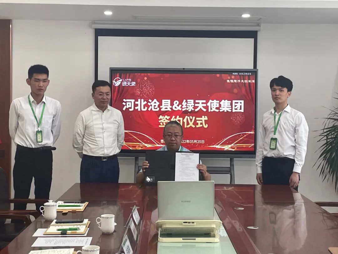 近日,綠天使集團與滄縣人民政府戰略合作簽約儀式通過云簽約的方式舉行。滄縣人民政府副縣長白俊杰、滄縣招商引資局副局長蒲子江、招商引資局辦公室主任張建業