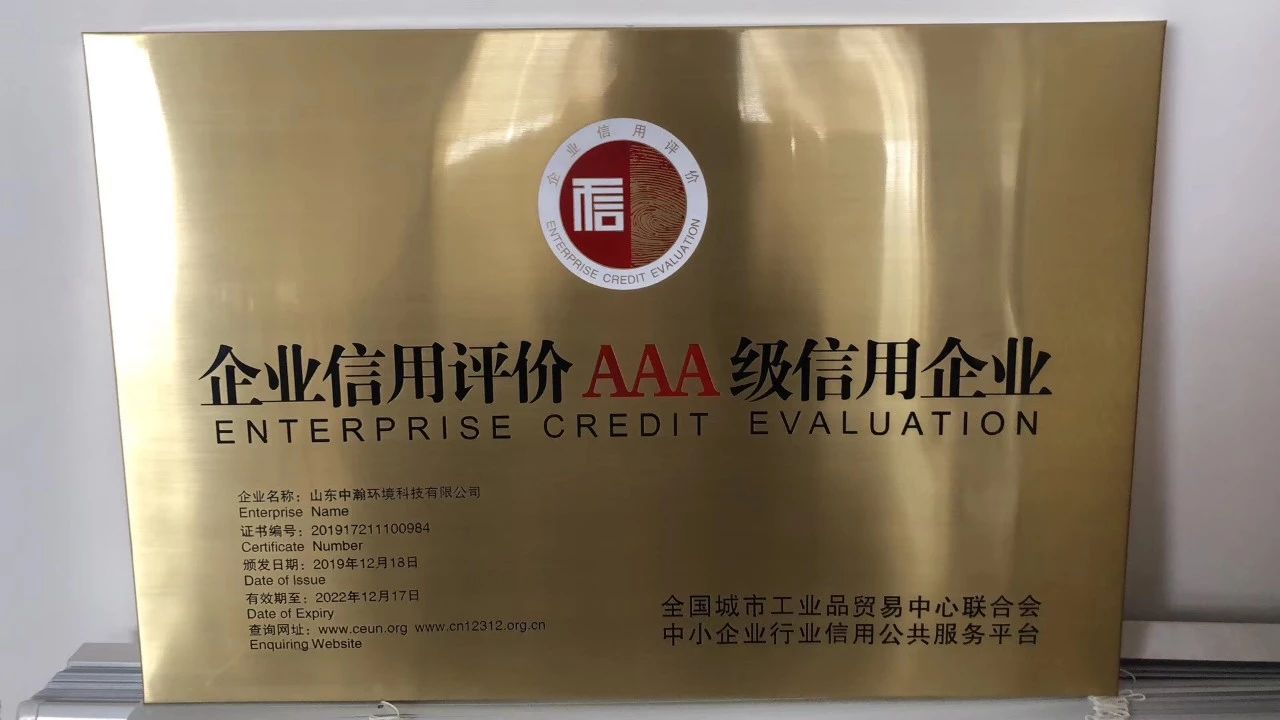 為加強中國行業的誠信建設,推動行業自律,近日,山東中瀚環境科技有限公司在綠天使指導咨詢下完成了AAA信用體系申請認定各項工作,并獲得由國家商務部和國務院國資委授權國家一級行業協會頒發的企業信用評級AAA等級認定資質。
