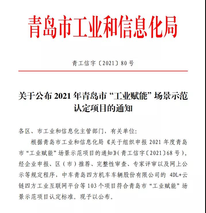 近日,青島市工業(yè)和信息化局發(fā)布《2021年青島市“工業(yè)賦能”場景示范擬認(rèn)定項目名單公示》,綠天使服務(wù)專精特新“小巨人”